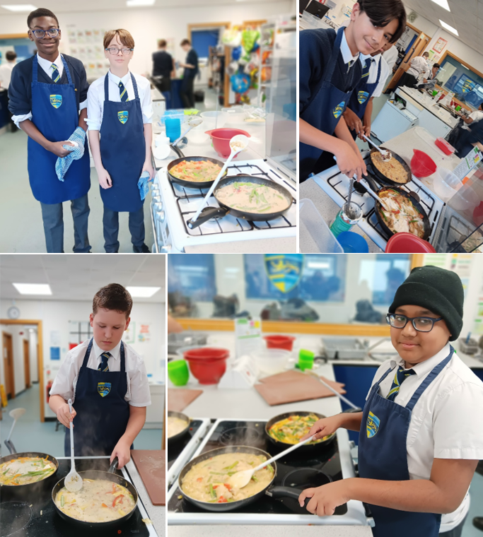 Mrs Cross’ Year 9 Food Preparation and Nutrition students (really!) enjoyed this week’s practical lesson – making Thai curry. The recipe forms part of our world food menus and supports marinading and cooking raw meat skills. Every student I spoke with said they would make this recipe at home!