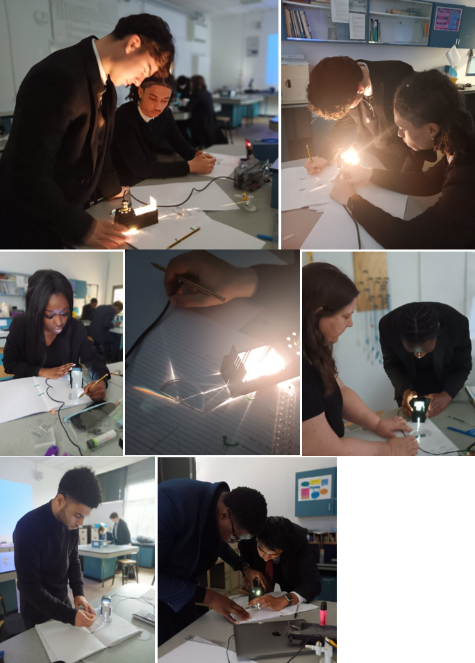 WG6 Year 12 Physics A Level students have been investigating the behaviour of light. In this practical lesson they used ray boxes to shine beams of light at semi-circular blocks and triangular prisms to see the effects of dispersion and total internal reflection.